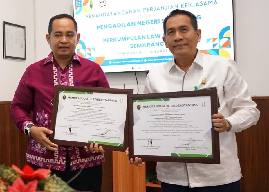 Semarang- Pengadilan Negeri (PN) Semarang Kelas IA Khusus kembali menegaskan komitmennya dalam memperluas akses keadilan bagi masyarakat melalui penandatanganan Nota Kesepahaman (MoU) dengan Perkumpulan Law & Justice Semarang terkait penyelenggaraan Pos Bantuan Hukum (Posbakum).